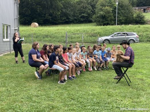 Am 03.08.2024 erwarteten wir insgesamt 25 Kinder des diesjährigen Kinderferienprogramms der Gemeinde bei uns auf dem Hundeplatz. Gegen 9:30 Uhr, nach dem gemeinsame Frühstück, holten einige Mitglieder des HSV Neckarzimmern e.V. die Kinder am Tennisplatz ab.