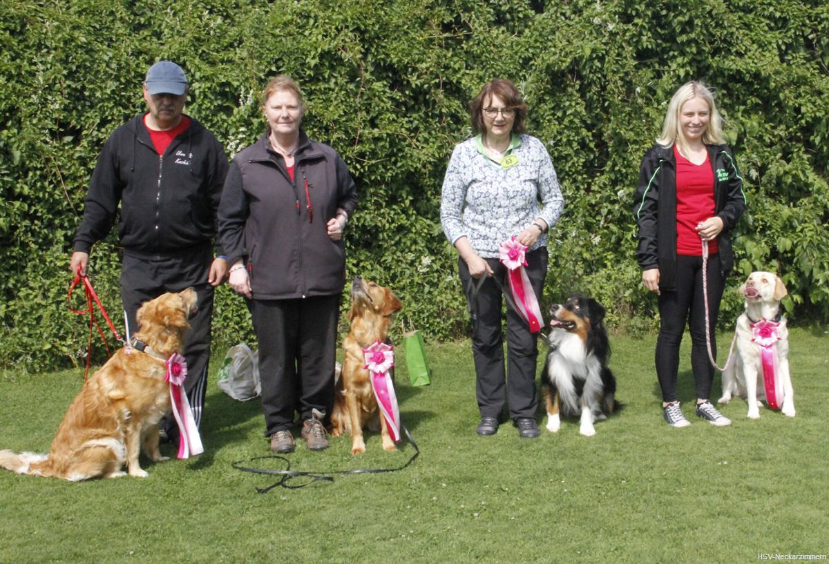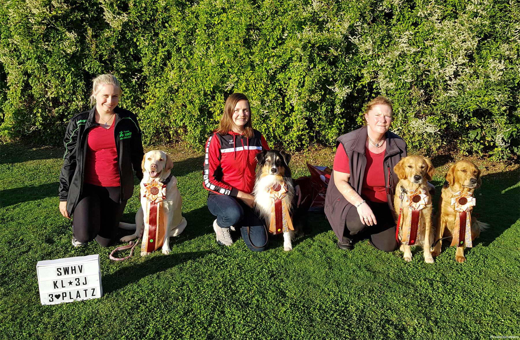 Uwe Heuss mit seiner Kashila im Geländelauf Platz 1, Ayleen Zirkwitz mit Curly im Dreikampf Platz 3, Elli Heuss und Honey im Vierkampf Platz 4
