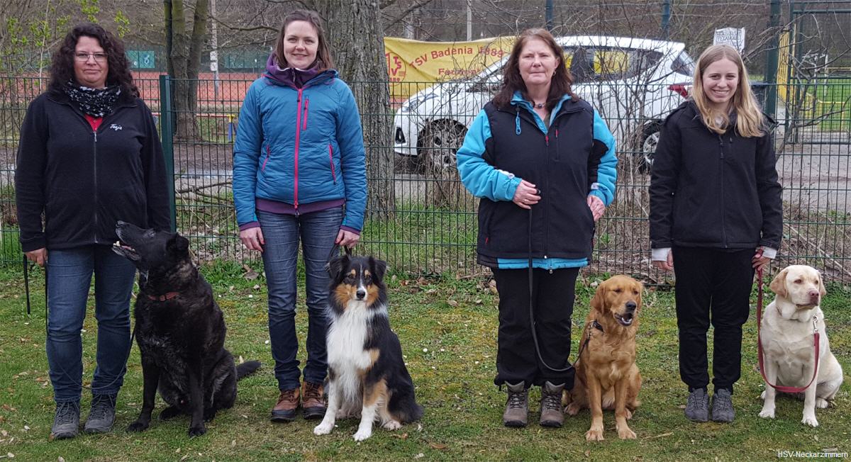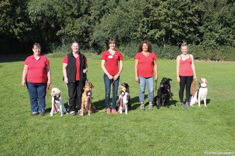 Jambo mit Susanne Ekin, Curly mit Ayleen Zirkwitz, Gismo mit Roswitha Junker, Shila mit Jasmin Kienzler und Floh mit Karin Kienzler.